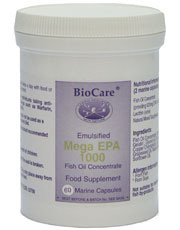 - BioCare Mega EPA 1000 (Fish Oil Concentrate). Mega EPA 1000 concentrated fish oil provides a good source of omega-3 fatty acids which contribute to many biochemical functions within the human body. Fish oils have been shown to help maintain normal blood lipid levels and support the integrity and mobility of the joints.