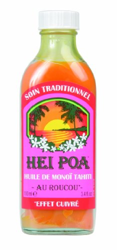 Hei Poa Monoi Beauty Oil with macerated tiare flowers enhanced with roucou oil. Tan enhancing oil to stimulate the skinâ??s natural pigment for an enriched tan. Softens and moisturises the skin after sun exposure and prolongs a tan.Note: Monoï of Tahiti is a traditional product naturally rich in fatty acids, and it solidifies at atemperature lower than 24°C. To use it in this case, run the bottle under a warm tap for 2 to 3minutes for the oil to melt into a liquid.Available at Amazon Check Price Now!